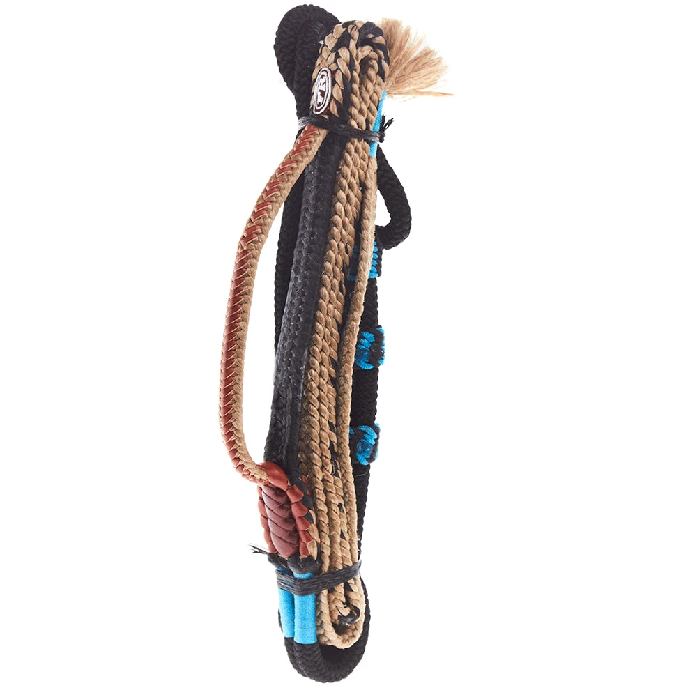 This American Style Left Handed Junior 7 Plait Braided Bull Rope is handcrafted by Fabio Ribeiro from Brazil! These are top of the line bull ropes that feature 7 plait braided construction. This bull rope has two tone woven Charroa to provide a little accent and customization to match your rough stock gear and chaps. This rope is custom designed as an American Style rope for left handed riders. It is perfect rope for any junior bull rider looking to step up his game in the practice or competition pen! FR-JBR-L